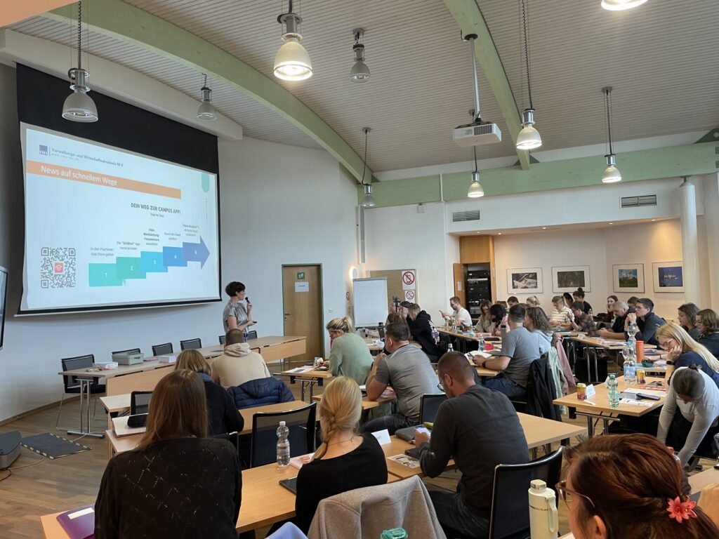 Bevor es mit den Vorlesungen losging, gab es noch eine wichtige Station: die Einführung in die Uninow-App. Mit dieser Anwendung können wir unsere Studierenden schnell, unkompliziert und zuverlässig mit allen relevanten Informationen versorgen – auch kurzfristig.